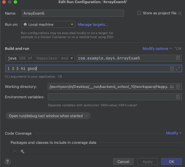 - main 함수는 하나의 인수를 가지며 인수는 외부에서 특정 값을 main함수로 전달 받을 목적으로 사용되는 것으로 이때 사용되는 인수를 명령 행 인수(Command Line Argument)라 함.