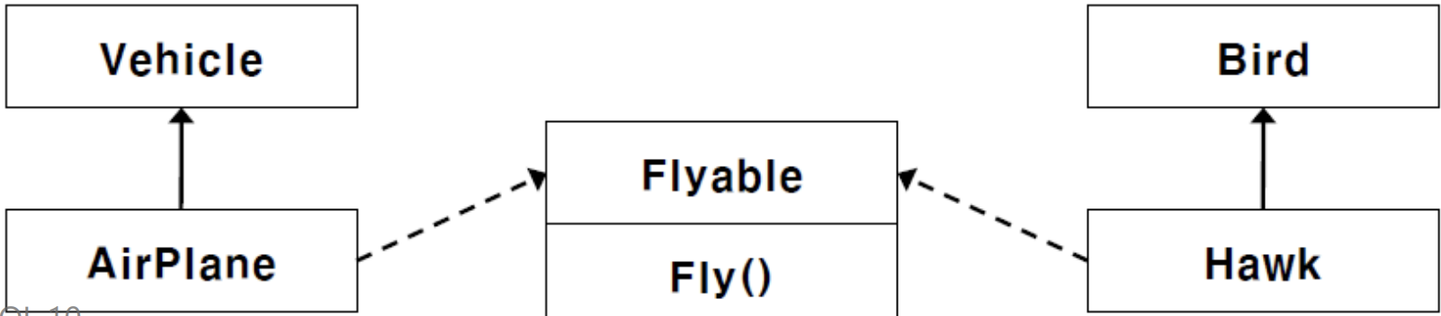 - 클래스 구조상의 관계와 상관없이 클래스들에 구현되어질 수 있는 규약